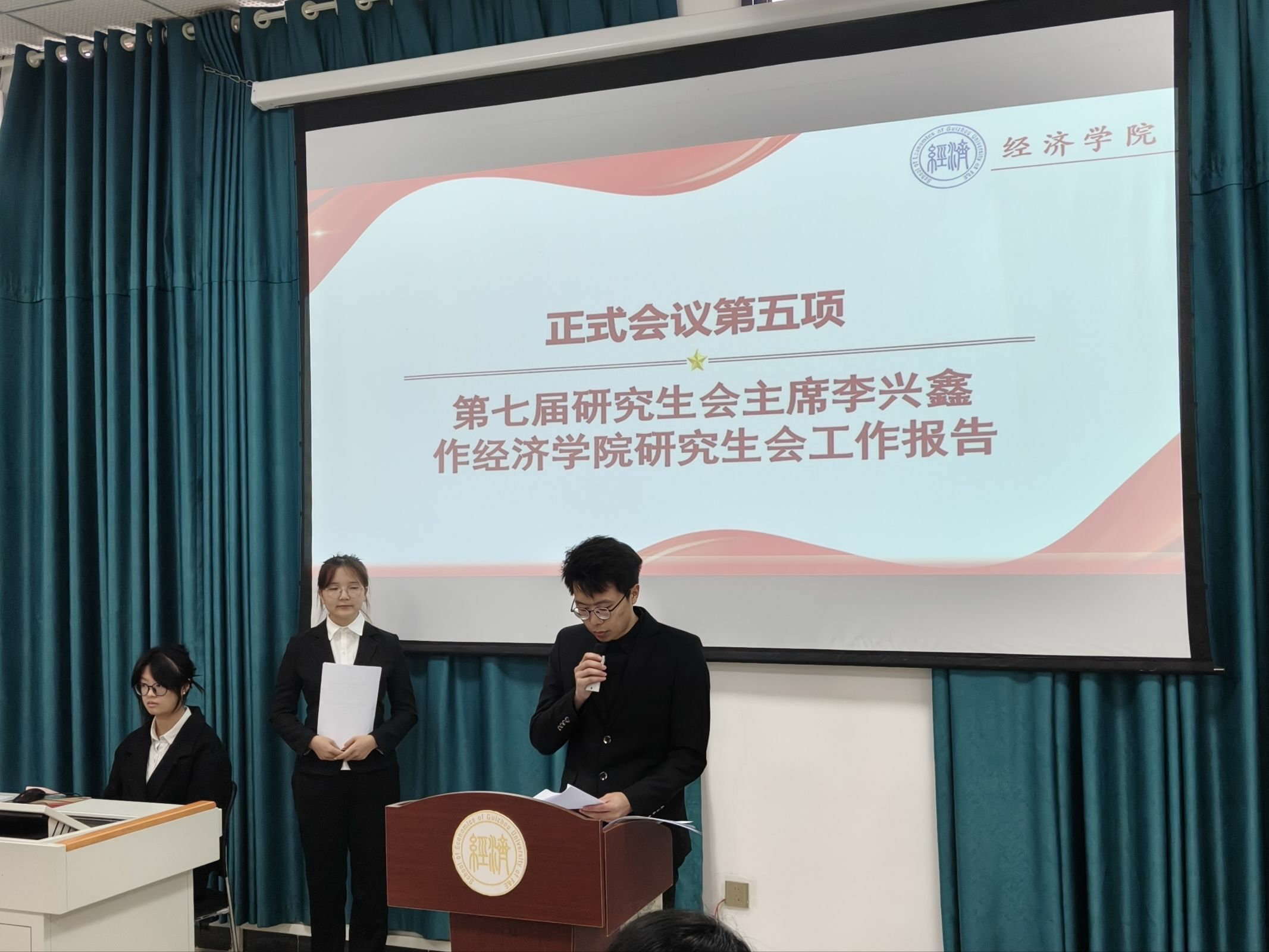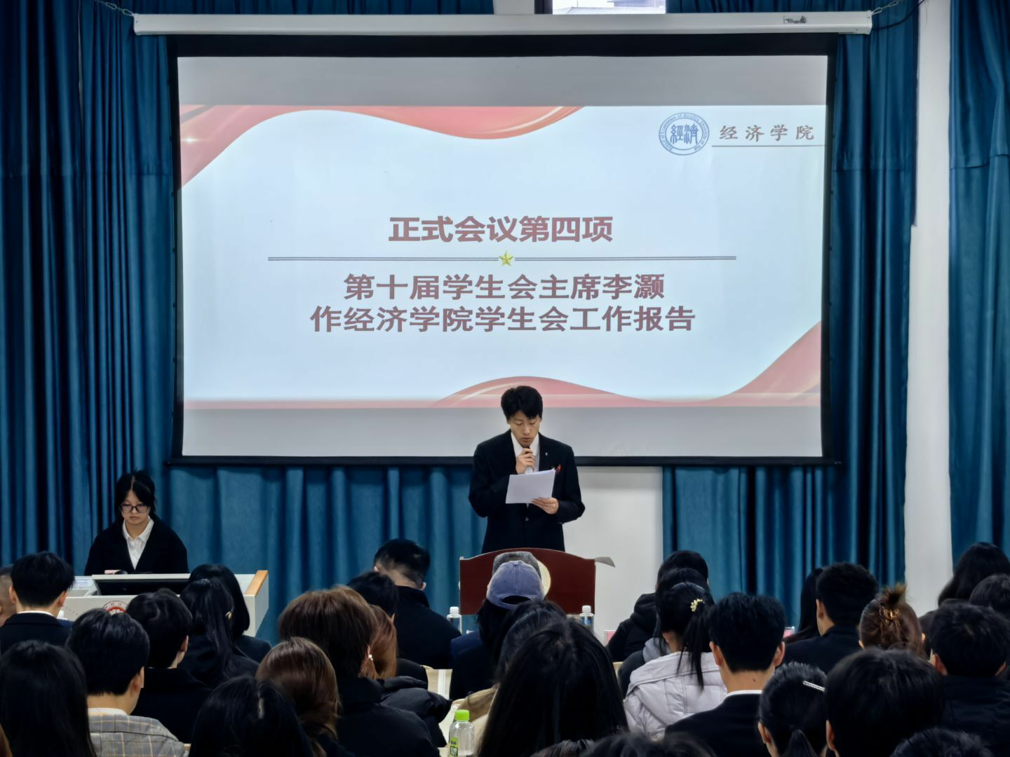 第十届学生会主席李灏与第七届研究生会主席李兴鑫分别作工作报告。汇报了过去一年在约炮视频 党委、校团委领导及院团委指导下的工作,涵盖学术、文体、实践等领域,同时指出组织协调、成员积极性等问题,并从干部能力、部门协作等方面提出改进建议。
