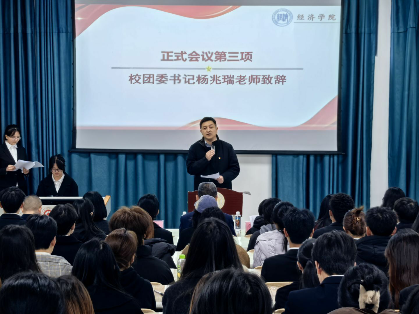 (图2:校团委书记杨兆瑞为本次大会致辞)