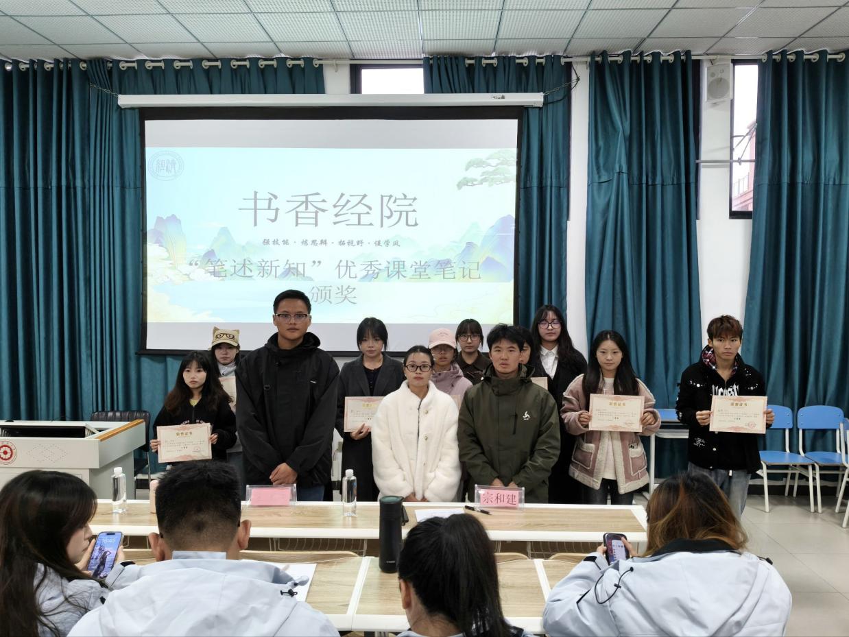 随后,主持人公布课堂笔记获奖名单。此次获奖作品展现了扎实的学习态度与高效的学习方法,全体同学应以获奖者为榜样,深耕学业、沉淀知识,在求学路上稳步前行。