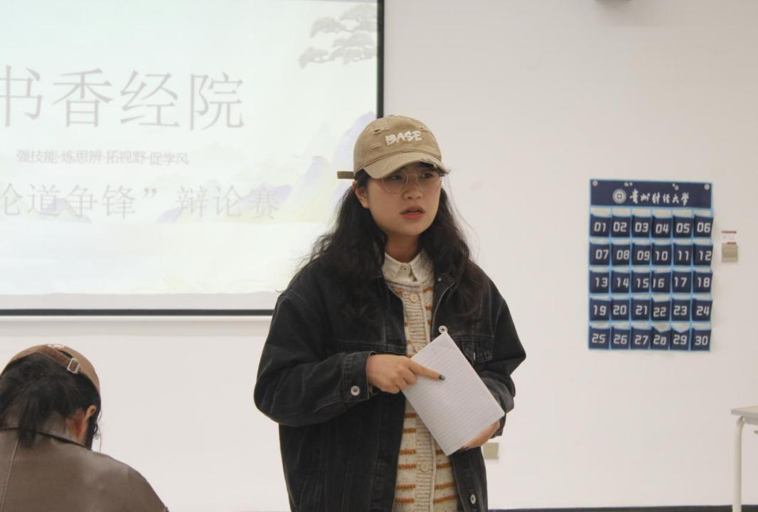 四支参赛队伍实力均衡、各展所长。选手们气场沉稳,眼神坚定却不失温和,梳理观点时条理清晰、逻辑严谨,发言语气诚恳且富有力量。即便偶有紧张,也始终保持昂扬气势;自由辩论与总结陈词环节中,选手们所提观点切中要害、问题直击核心,收尾时的有力手势与铿锵言论,让整场比赛充满激情与张力,充分展现了经院学子的思辨素养与表达能力。
