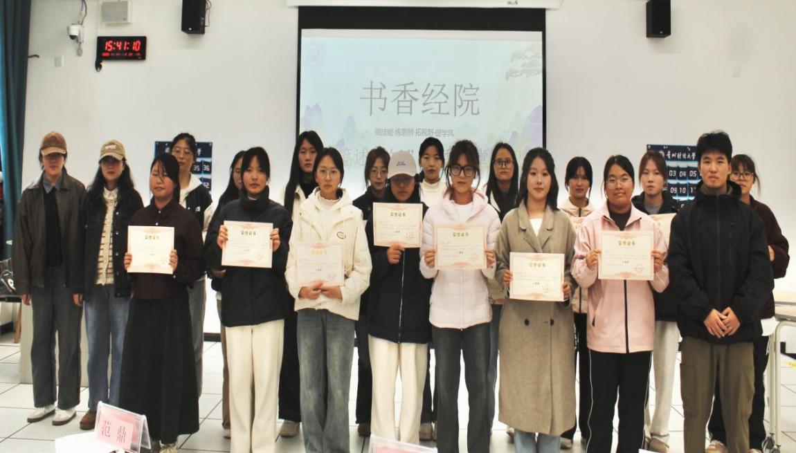 点评环节结束后,主持人现场公布了课堂笔记获奖人员、辩论赛最佳辩手及优秀团队名单。这些荣誉不仅鼓舞获奖同学保持热忱,更将带动更多同学投身勤学善思的行列,让“书香经院” 的良好学风持续传递。